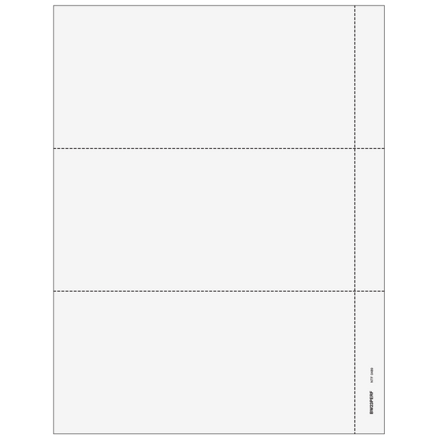 Use this 3up paper to print 3 employee W2s.  No instructions are printed on the forms.  20# laser paper.  Two horizontal perforations and a 3/4" right hand side perforation. Order by the number of sheets needed.