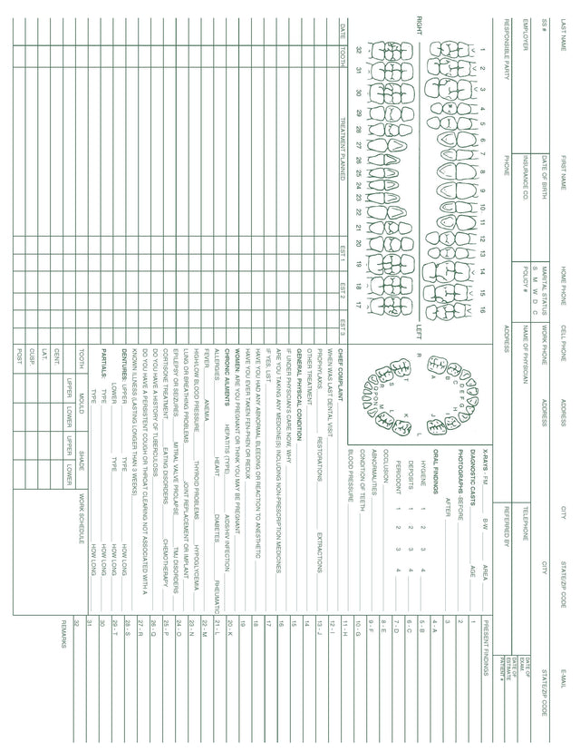 Dental Record form PMS 349 green 8‐1/2" x 11" (100/PK)