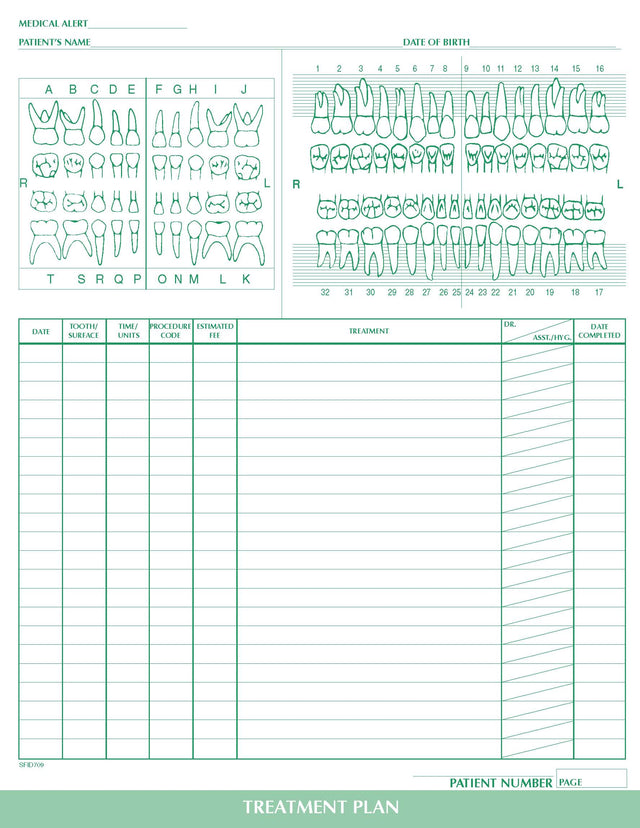 Treatment Plan w/ Chart form PMS 347 green 8‐1/2" 11" 2‐hole punched top (100/PK) is backordered and will ship as soon as it is back in stock.