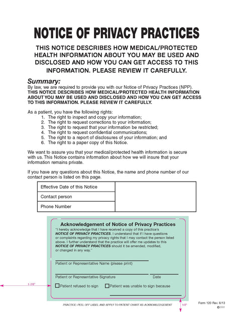 Regular price $296.91Unit price /UnavailableNotice of Privacy Practices English (250/Pack)
