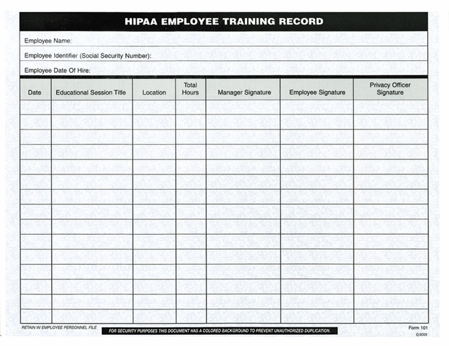 HIPAA Employee Training Record (25/Pack) is backordered and will ship as soon as it is back in stock.