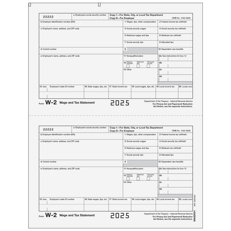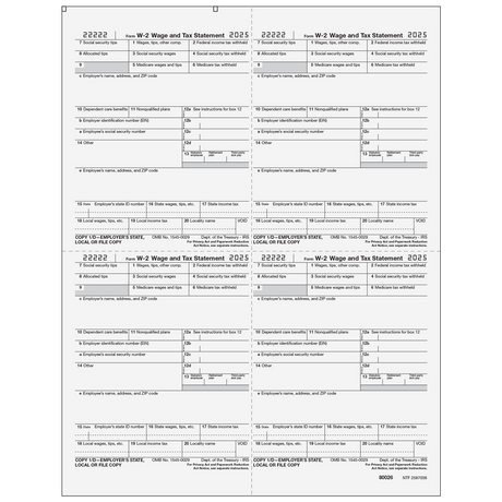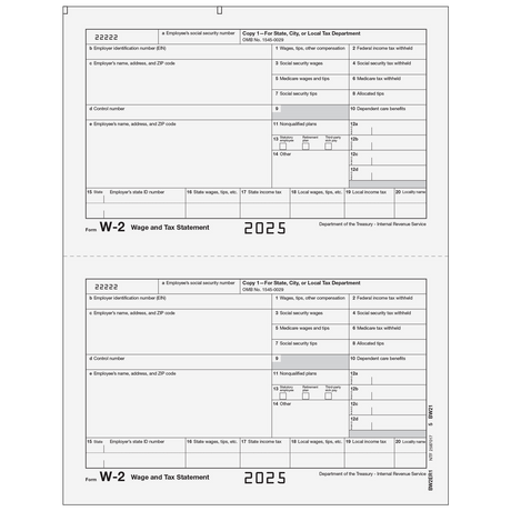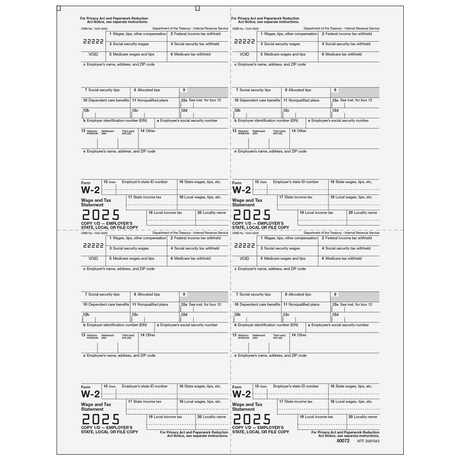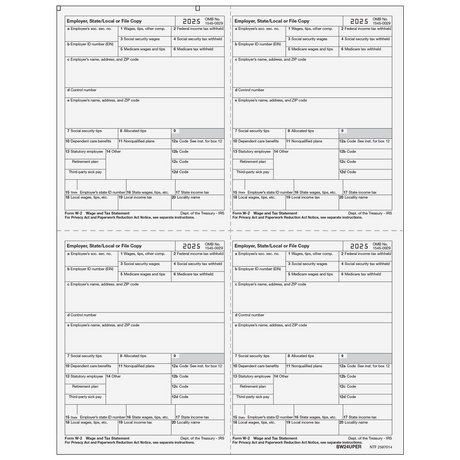 Regular price $10.12Unit price /UnavailableW-2 Employer State, City or Local, Copy 1/D - 4up Quadrants - 25 Qty