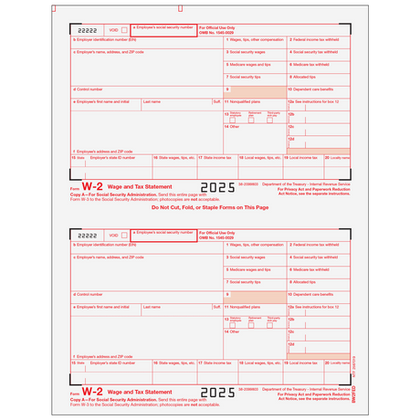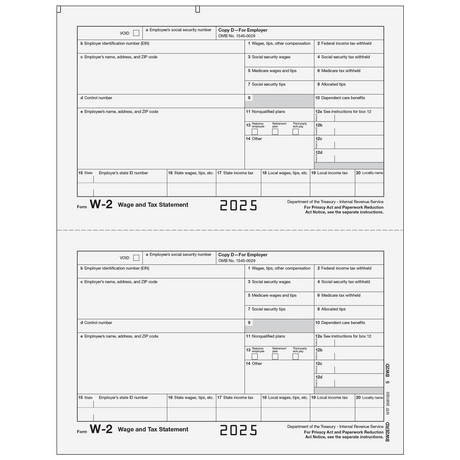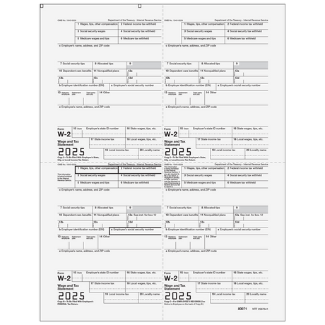 Regular price $10.12Unit price /UnavailableForm W-2 - Employer State/Local/File Copies 1/D - 4up Quadrants - 25 Qty