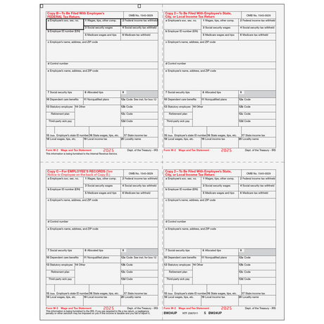 W-2 Employee Copies 2/2/B/C - 4up Quadrant - 25 Qty