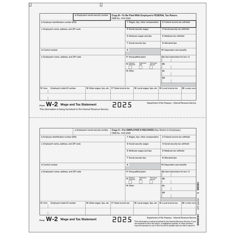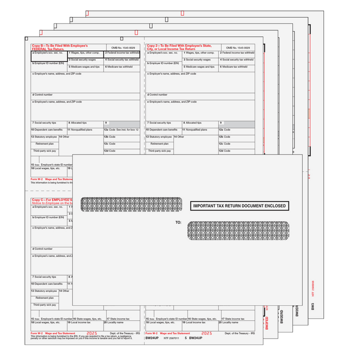 Regular price $10.12Unit price /UnavailableForm W-2 4up Quadrant Condensed Copies: B/2/C/2 - 25 Qty