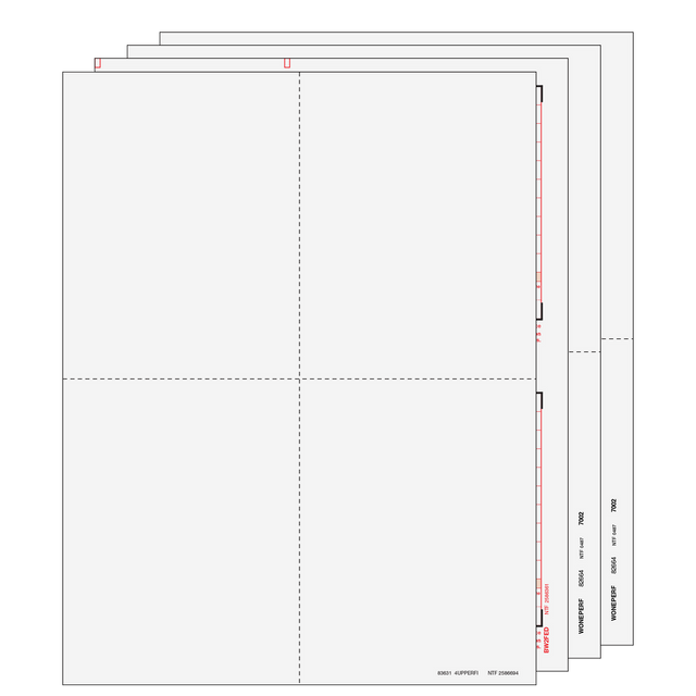 The 2-up employer sheets have no side perforation. The 4-up employee sheets have employee instructions on the back. Print employee copies as a batch, then fold and mail. Mail employer copies in a batch to the SSA and state. Check your software for compatibility. Order by number of forms, not sheets.