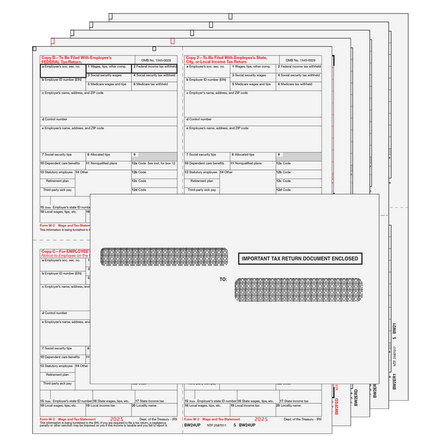 Check your software for compatibility. Employee copies are provided on a 4-up quadrant form and are ready to fold, insert, and mail. Print each copy in a batch. No collating required. Order by number of forms, not sheets.