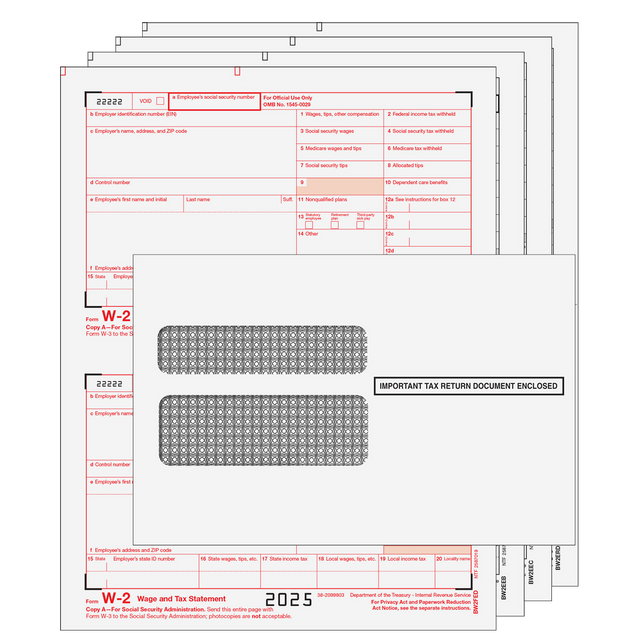 Traditional W-2 Form 4-part Kit (with Tamper Evident Envelopes) - 25 Qty