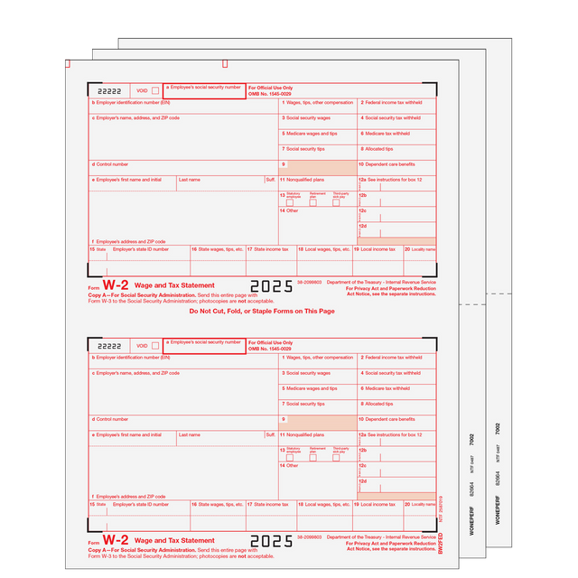 - Preprinted W-2 copy A (red scannable)