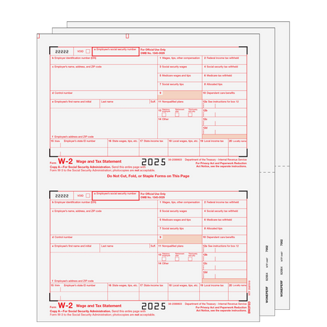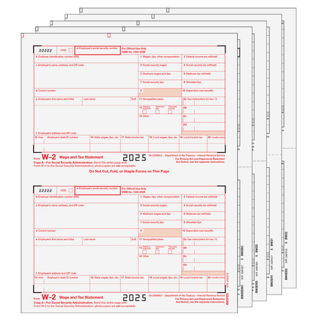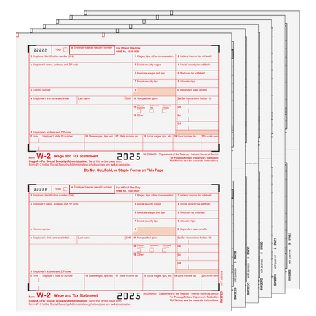 Regular price $49.20Unit price /UnavailableCondensed W-2 Form 6-part Set (2-up Copies) - 25 Qty
