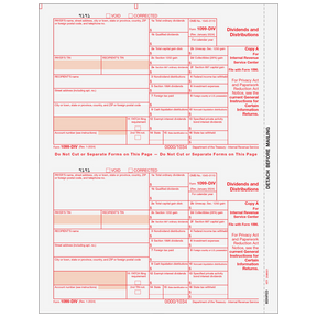 Dividends and Distributions. Use Form 1099-DIV Copy A to print and mail payment information to the IRS. 1099-DIV Forms are 2up on an 8 1/2 x 11" sheet with a 1/2" side perforation and are printed with required red scannable ink on 20# laser paper. Mail in a batch to the IRS. Order by number of forms, not sheets.