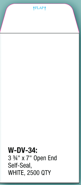 3 3/4 x 7 Open End, Self Seal, White 2500 Qty