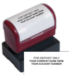 Custom layout allows you to include exactly what you want or what your financial institution requires. Popular 3-line format contains: For Deposit Only, Company Name, and Account Number.Prepare deposits faster, easier, and more accurately! Our Pre-Inked Endorsement Stamp imprints your banking information in a customizable format. No messy ink pads to dry out. Clear impressions reduce risk of mistakes.